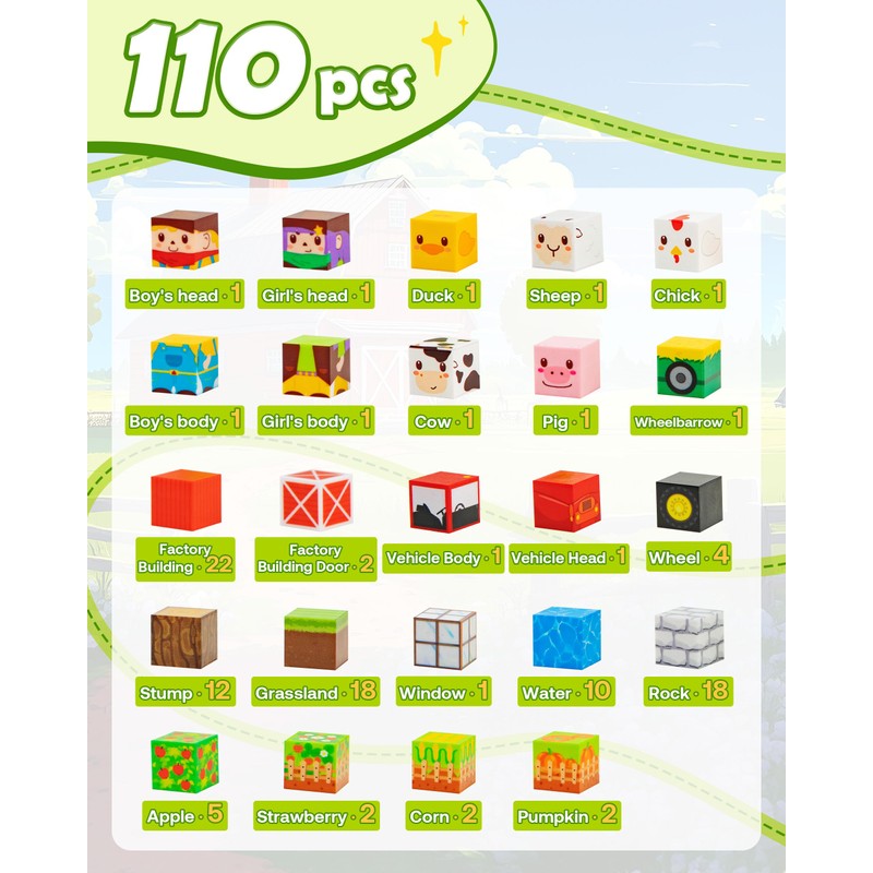 Growithu Magnetic Building Blocks Toys for Boys: 110PCS Magnet Farm Sensory Cubes Gifts for Kids 3 4 5 6 7 8 9 10 Yeas Old