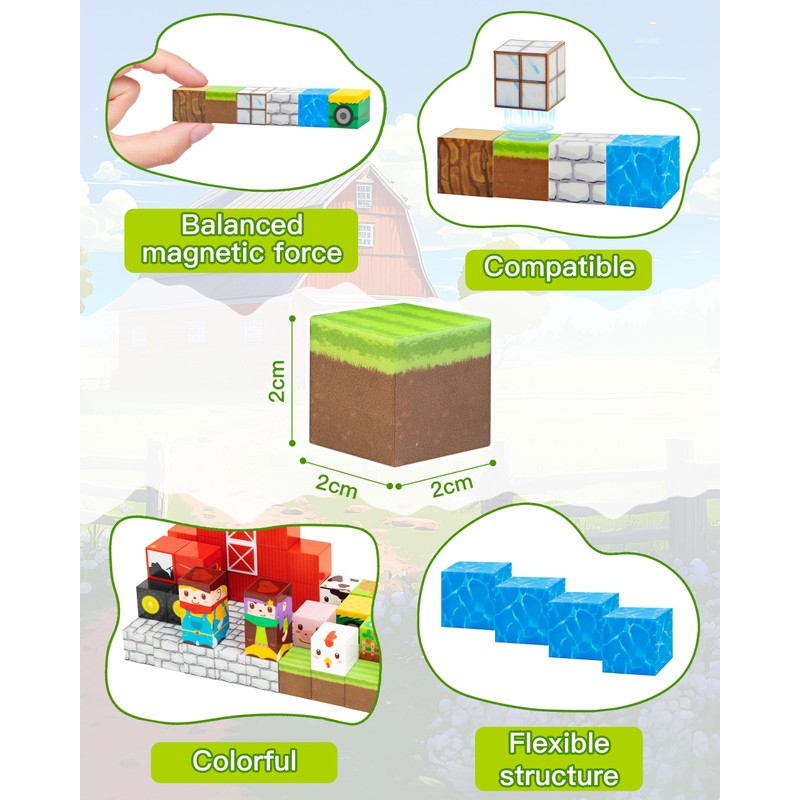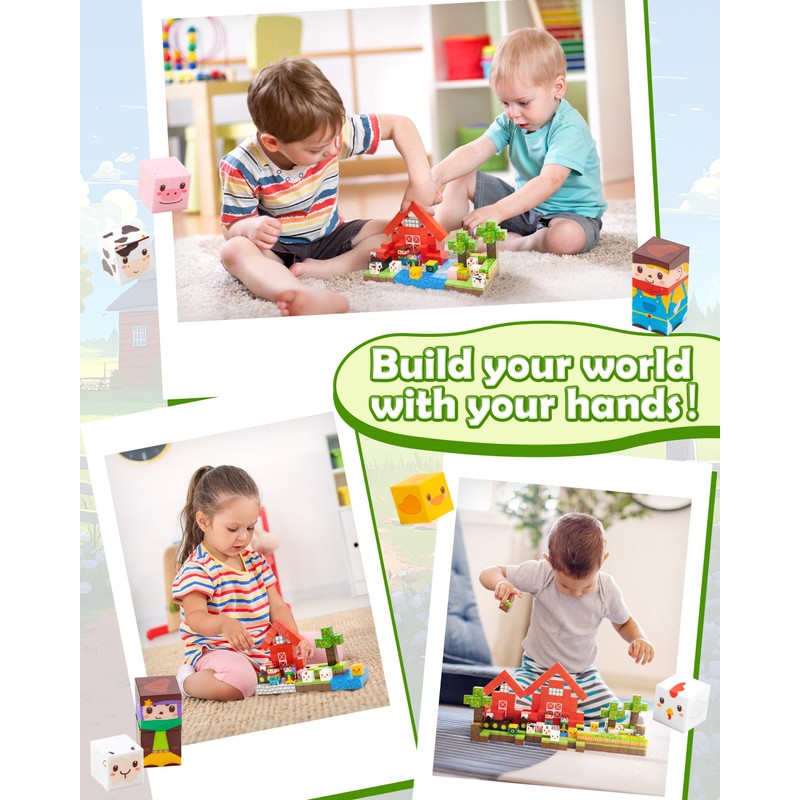 - 【Immersive Farm-themed Building Adventure】Children can build transportation, fruit trees, barns, crop fields and more, while playing the role of a farmer - feeding the animals, harvesting the fields, managing the logistics, and creating lots of creative scenarios