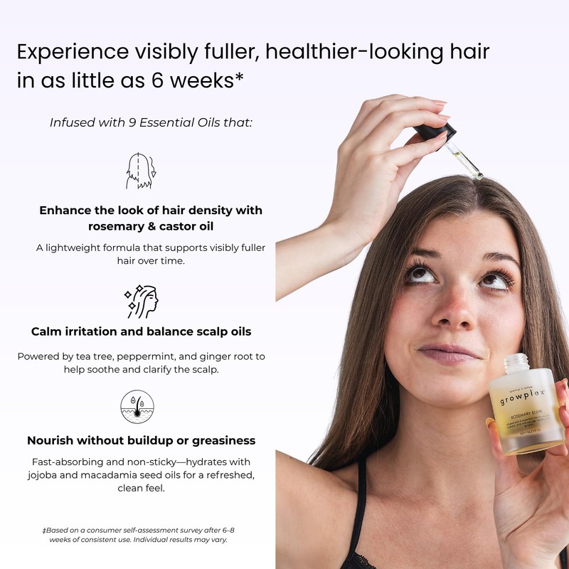Growplex Rosemary Elixir – Daily Scalp Oil with 9 Essential Oils – Lightweight, Non-Greasy Formula for a Healthy-Looking Scalp – For Men & Women – 2oz