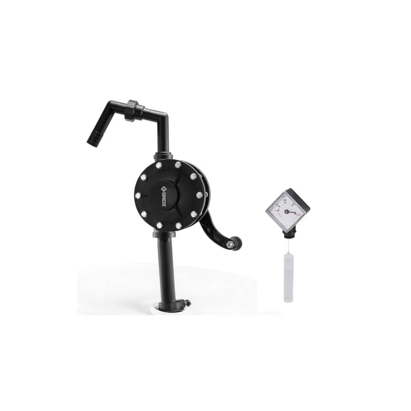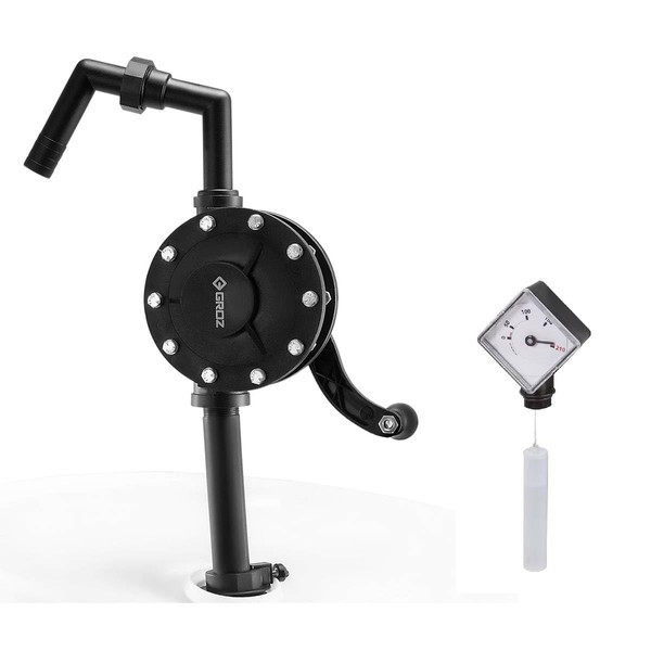 Groz Plastic Rotary Pump with Drum Level Indicator, for Light Oils and Anti-Freeze