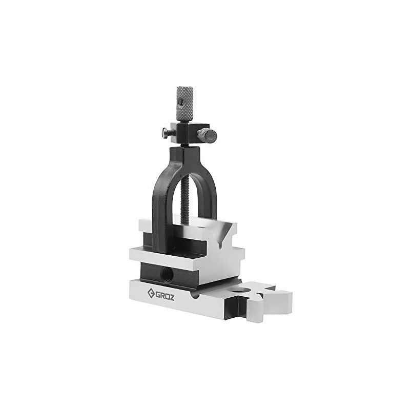 • Adjustable side screw with cap in the clamp supports the block and prevents tilting during drilling, milling or grinding operations