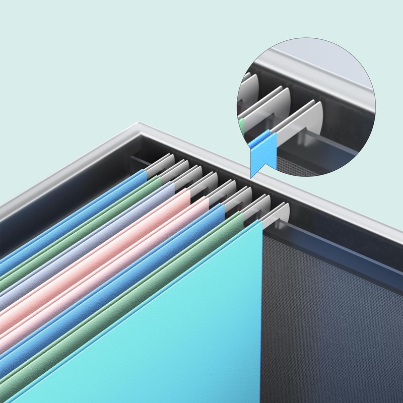 - [One-Piece Plastic Frame Slides ] - Different from other file box hanging systems, Our file box hanging has been improved and upgraded. You only need to put the one-piece plastic frame slides on the top of the file box easily. After completion, The file box hanging systems has a greater load-bearing capacity, you can not only slide the hanging file back and forth smoothly, but also further strengthen the file box to prevent the box from shaking.