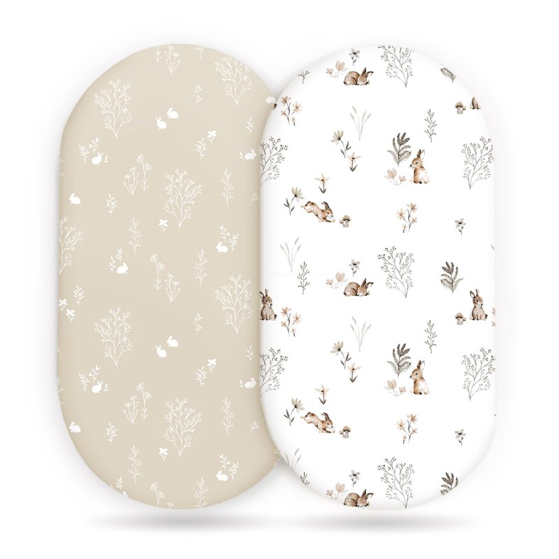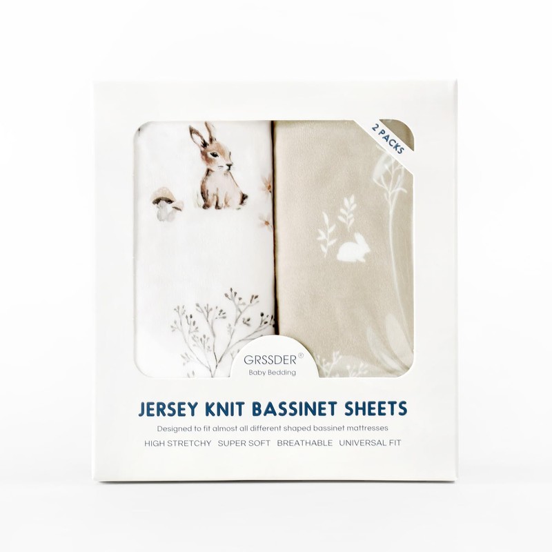 GRSSDER Stretch Ultra Soft Fitted Bassinet Sheet Set 2 Pack, Universal Fit for Bassinets Baby Cradle Moses Basket Oval Rectangle Mattress Safe and Snug, Stylish Watercolor Rabbit Pattern