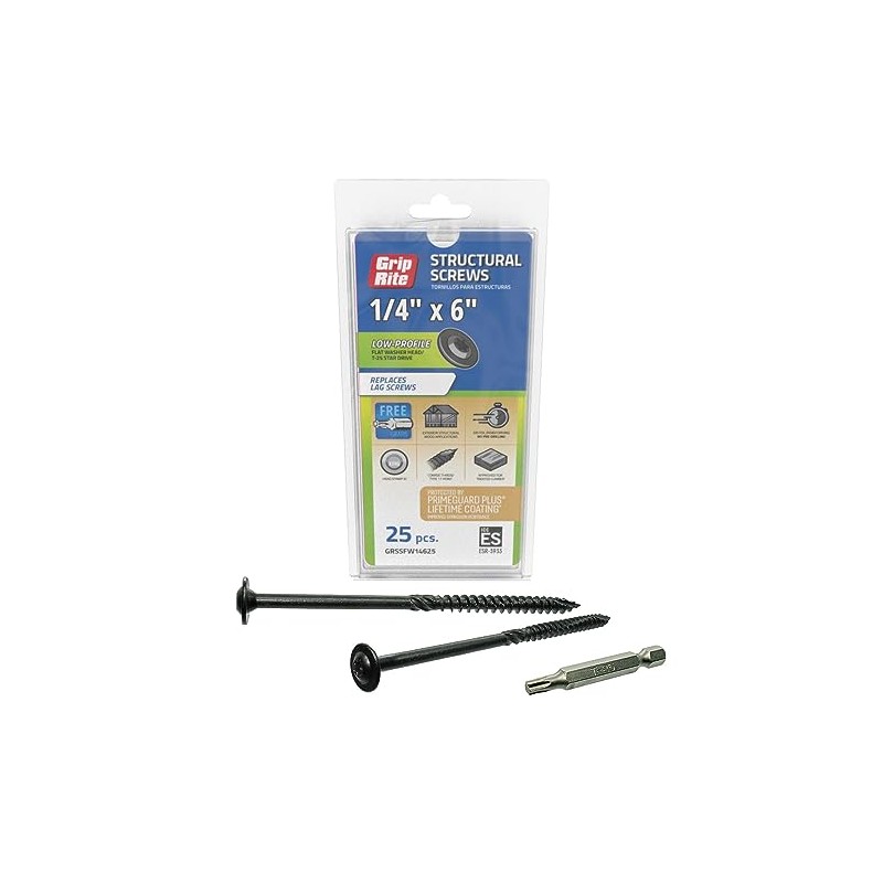 GRSSFW14625-GRIP-RITE 1/4 X 6 PRIMEGUARD Plus Coated T-25 Star Drive Washer Head COARSE Thread Type 17 Point Structural Screw 25 Count