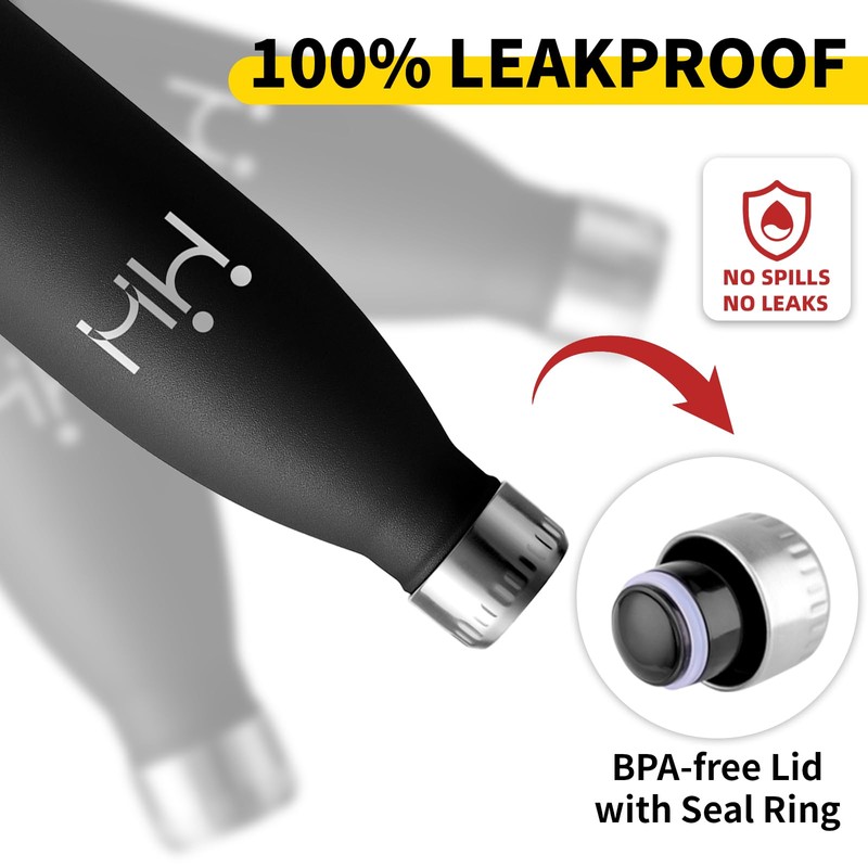 - Leak-proof lid: the leak-proof lid of the water bottle has an integrated food-safe silicone seal to ensure 100% leak-proof. Whether you store the bottle in a school bag or a travel backpack, you don't have to worry about leaks. The narrow design of the steel water bottle makes it easy to store in a camping bag or in the back seat, so you can carry it comfortably
