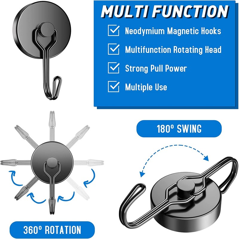 - 【Versatile Hanging Solution】This magnetic hook is highly versatile, featuring swivel and swing capabilities, making it suitable for various hanging needs. You can use it in homes, offices, garages, and more, effortlessly hanging items like keys, tools, decorations, and others.