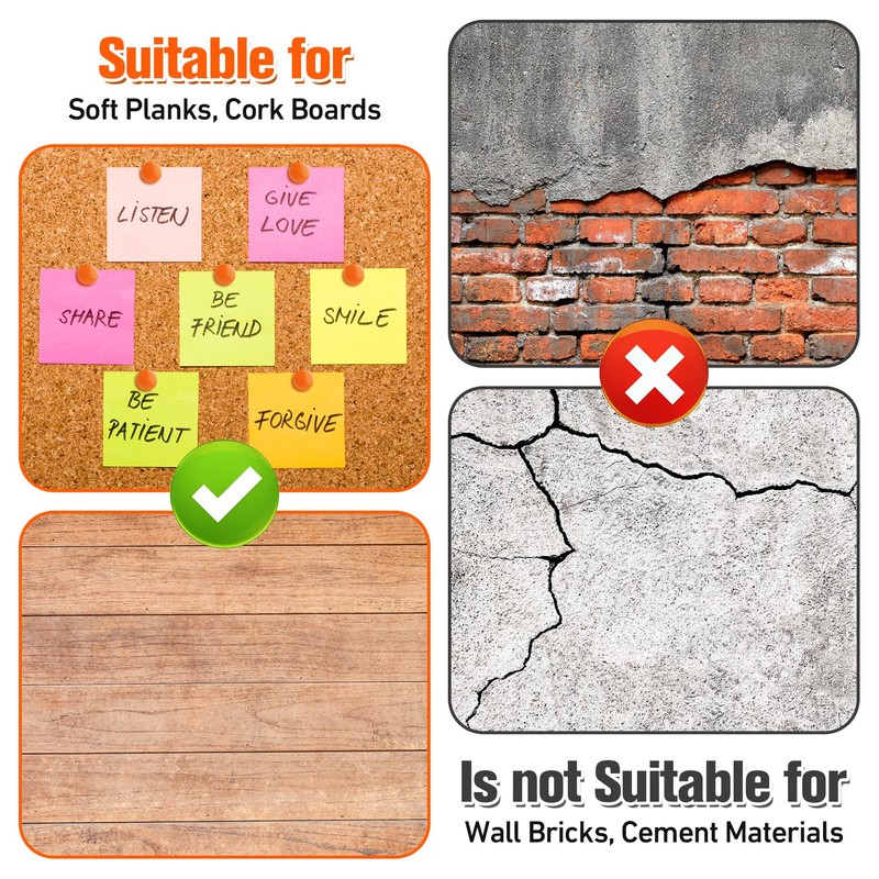 - Versatile Application - These thumbtacks are perfect for home and office bulletin boards, planning notes, posters, map marking, and more. They can securely hold various papers and materials in place.