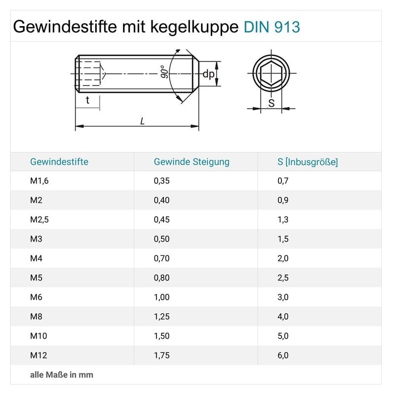 Grub Screws / Grub Screws M4 x 12 mm Black 45H - DIN 913 - with Taper Point and Hexagon Socket - Metric Thread (Thread: M4, Length: 12 mm, Quantity: 10 Pieces)