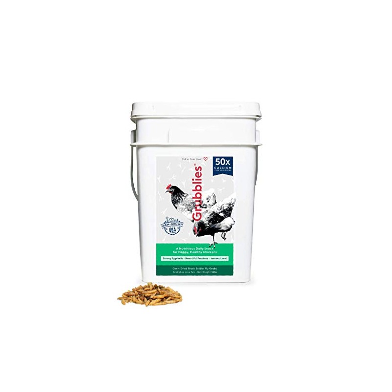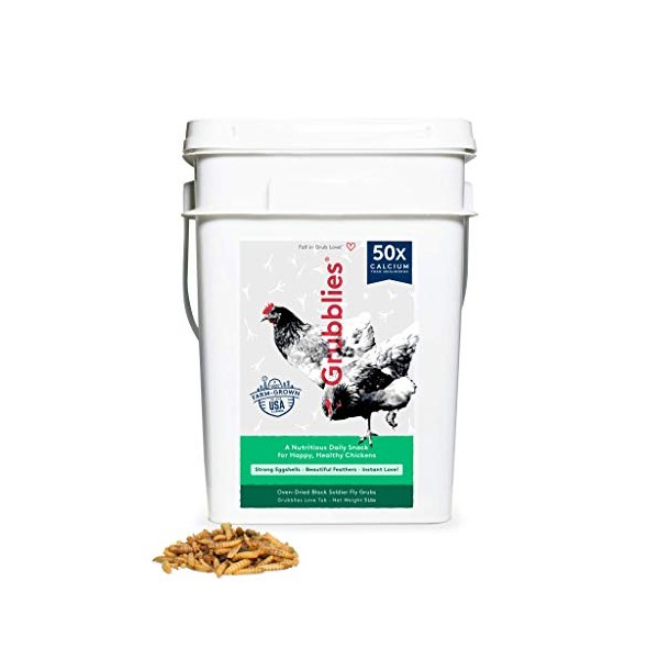 Grubblies Original USA & CA â Natural Grubs for Chickens - Chicken Feed Supplement with 50x Calcium, Healthier Than Mealworms - Black Soldier Fly Larvae Treats for Hens, Ducks, and Birds