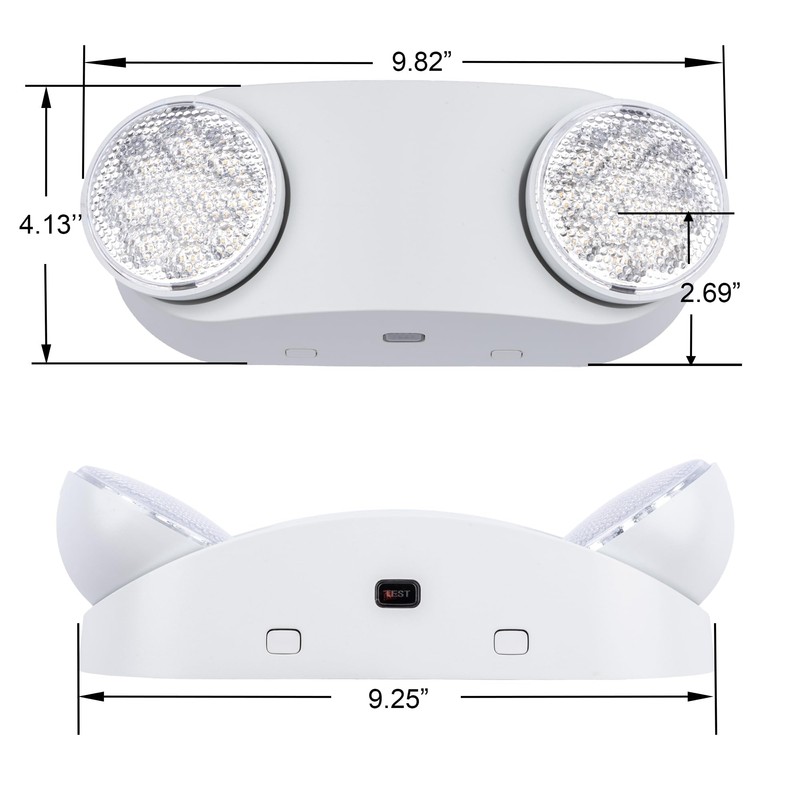 - DUAL LED HEADS: Multi-Angle Rotation. The emergency light LED head light can be rotated 360° horizontally and 90° vertically. Provide better illumination for any living or working space.