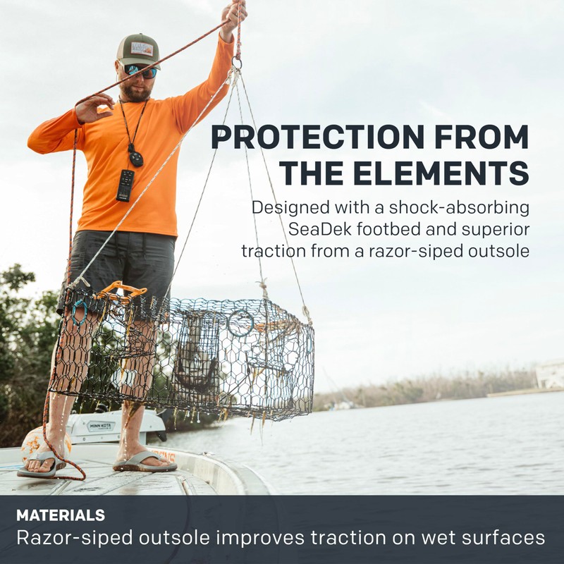 • Ultimate Comfort - Stay comfortable all day long with our fishing sandals for men, featuring quick-drying straps and a SeaDek footbed that keep your feet dry and provide cushioned support, so you can fish and explore comfortably without foot fatigue.