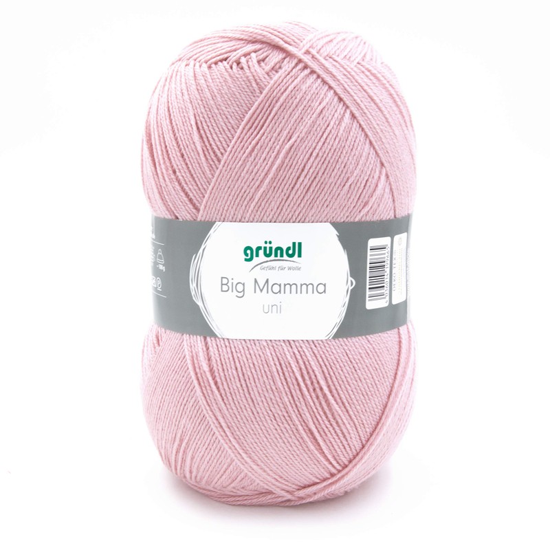 - Box contents and other features: Gründl Big Mamma plain, 1 x 400 g / 100% polyacrylic / tension sample: 20 m x 27 R = 10 x 10 cm / 400 g / 1040 m (= 50 g / 130 m) / needle. 3.5 - 4.5 / Material consumption: jumper (size 38) = approx. 550 g