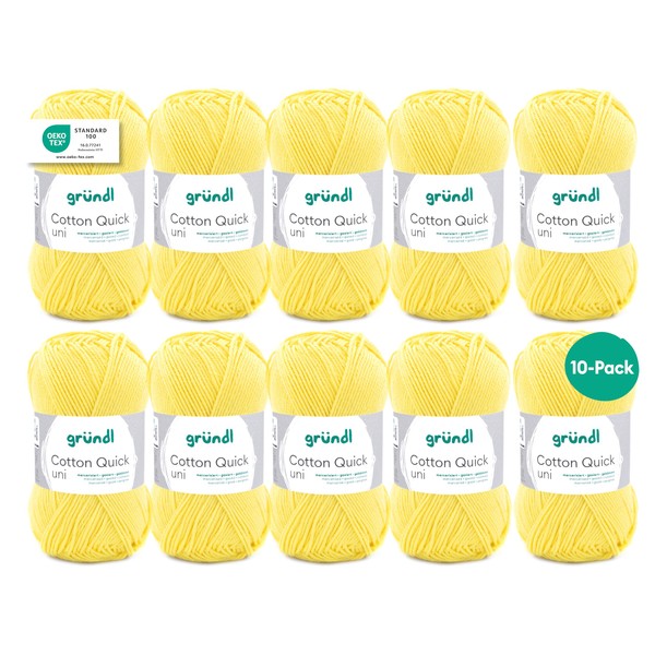 Gründl Cotton Quick Uni Value Pack of 10 Balls, Hand Knitting Yarn, Cotton, Yellow, 29 x 12 x 7 cm, 1 Unit