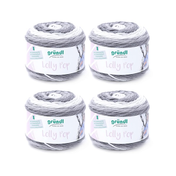 - Box contents and other features: Gründl Lolly Pop hand knitting yarn, crochet yarn, 4 x 150 g, 100% polyacrylic, tension sample: 16 m x 21 R = 10 x 10 cm, material consumption: jumper (size 38) = approx. 600 g
