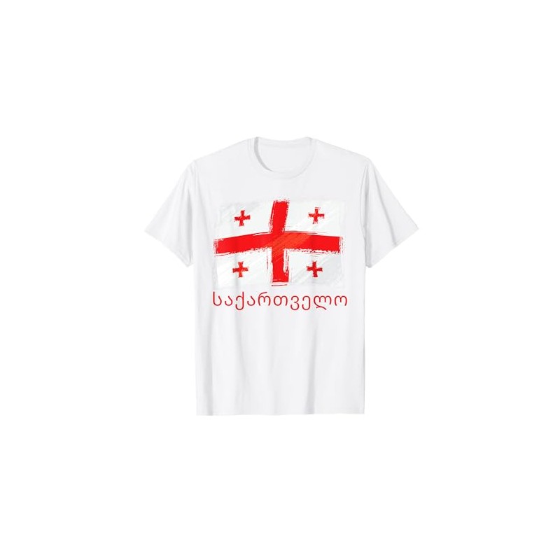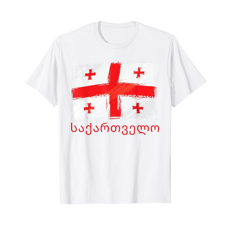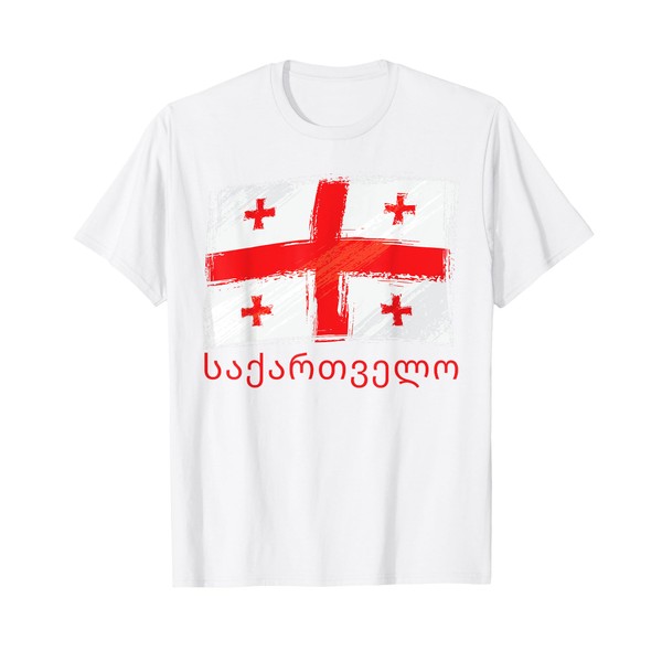Grunge Georgia 5-Cross Flag | Georgian language T-Shirt