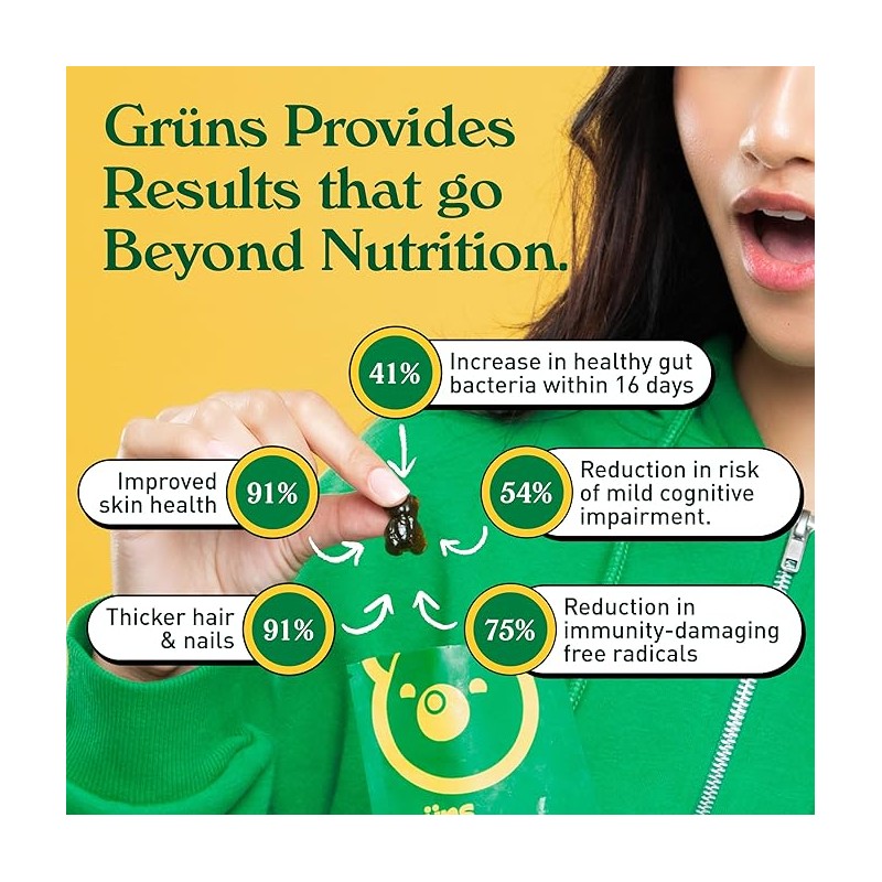 - Advancing with Science: The ingredients in Grüns have been studied for hundreds of years and are backed by 35,000 research publications. Our dedication to innovation along with groundbreaking research is what ensures we’re making the most comprehensive gummy. It's a delicious habit backed by science that you'll want to keep.