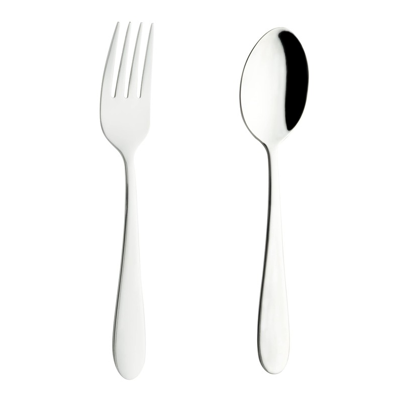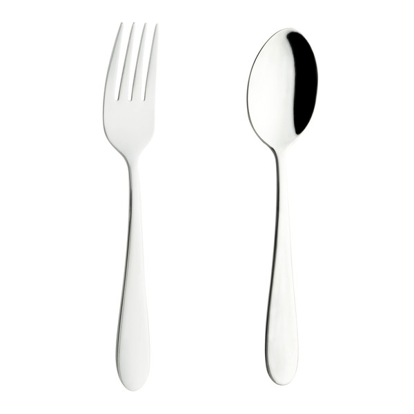 - CONTENTS: A small fork and spoon suitable for children as they progressing towards using adult size cutlery