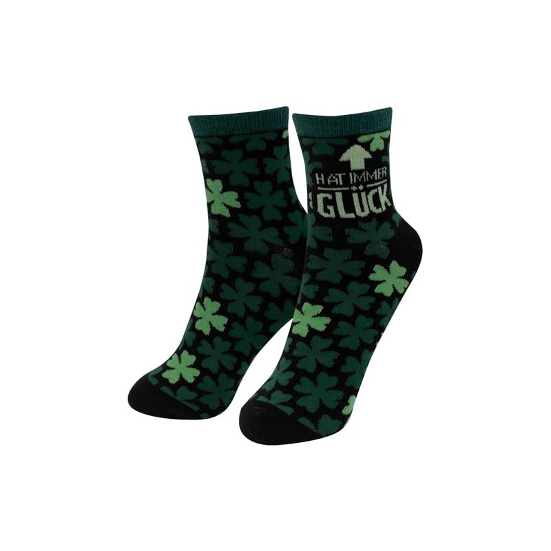 • Magic socks with motif: magic socks with coloured motif print and saying "Hat immer Glück", coloured men's socks in size 41-46, material: 80% cotton, 15% nylon, 5% elastane. The socks are delivered pressed.