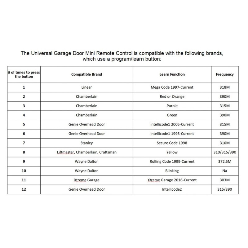 - Will work with learn functions, megacode, rolling code, megacode, intellicode, multiple frequencies, and dip switches