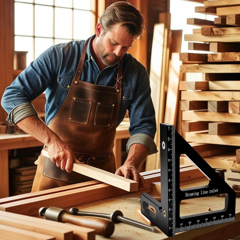 - VERSATILE USE: Functions as a 45/90 degree angle ruler, protractor, and drawing line tool for various woodworking projects