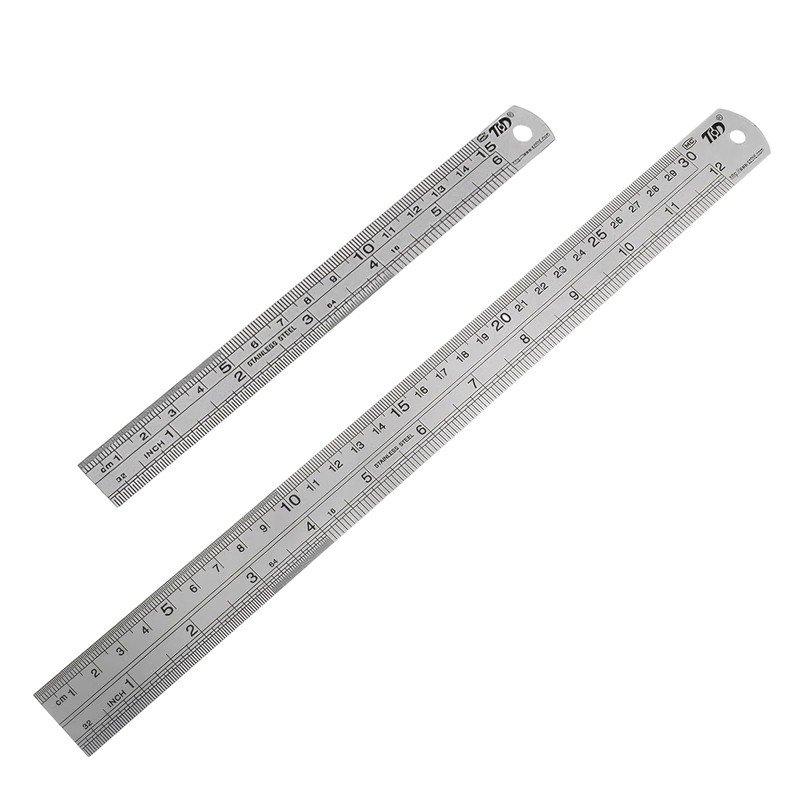 This set of metal rulers is an essential tool for any workspace. Crafted from durable stainless steel, these rulers provide precise measurements in both inches and centimeters, making them versatile for various tasks. The 12-inch ruler (30.48 cm) and 6-inch ruler (15.24 cm) offer flexibility and accuracy, allowing you to measure and draw with confidence. Whether you're artist, or professional, these rulers are designed to withstand daily use and deliver consistent results. The sleek silver finish not only looks stylish but also ensures easy readability. With their sturdy construction and dual measurement scales, these metal rulers are a reliable choice for all your measuring and drawing needs.