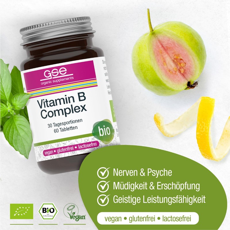 GSE Vitamin B-Komplex, 60 Tabletten, 100% vegan und ohne Zusatzstoffe, hochdosiert, BIO-Qualität