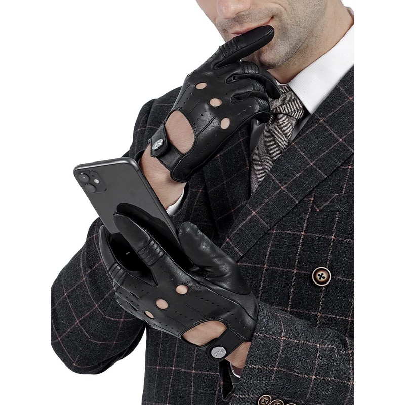 - Breathability: The men's driving gloves are equipped with movement zones above the ankles and mesh zones between the fingers to allow air circulation and allow heat to escape. Unlined, perforated making it breathable and comfortable. With half waistband and snap closure - easy to put on and take off.