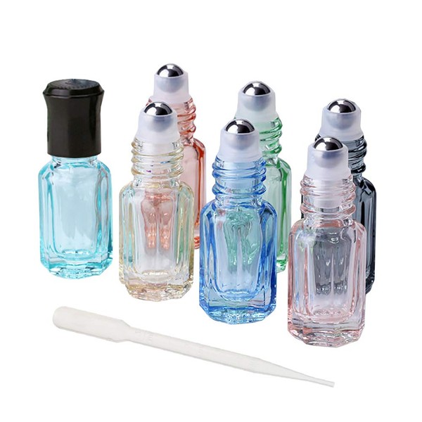 GSHLLO 10 Pcs 3ml Refillable Colorful Glass Roller Bottles Roll on Bottles Essential Oil Bottles with 1 Pcs Dropper