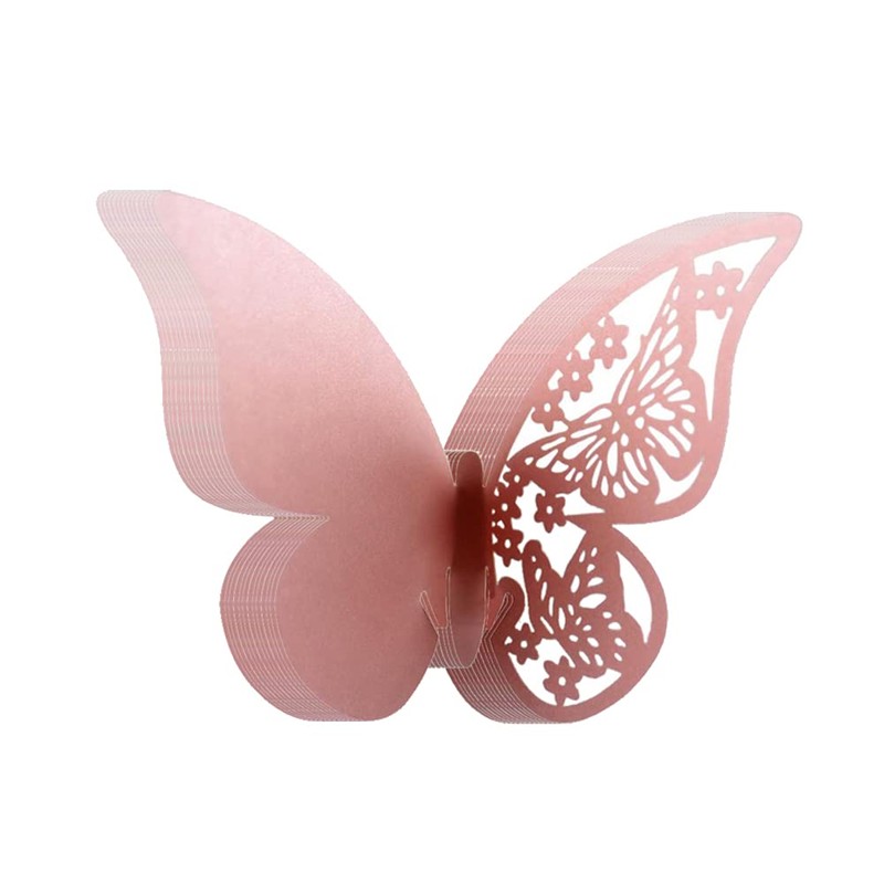 GSHLLO 50 Pcs Paper Butterfly Table Place Name Cards 3D Butterfly Wall Stickers Decor Wine Glass Cup Decorations for Wedding Birthday Party Pink