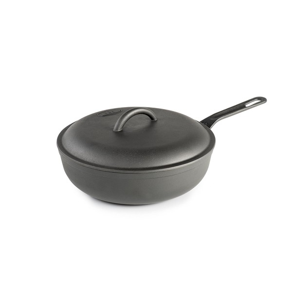 GSI Outdoors Guidecast 10” Deep Frypan I Dual Handle & Self-Basting Dome Lid | Cast Iron, Lightweight, Gourmet Frying Pan, Camp Cookware