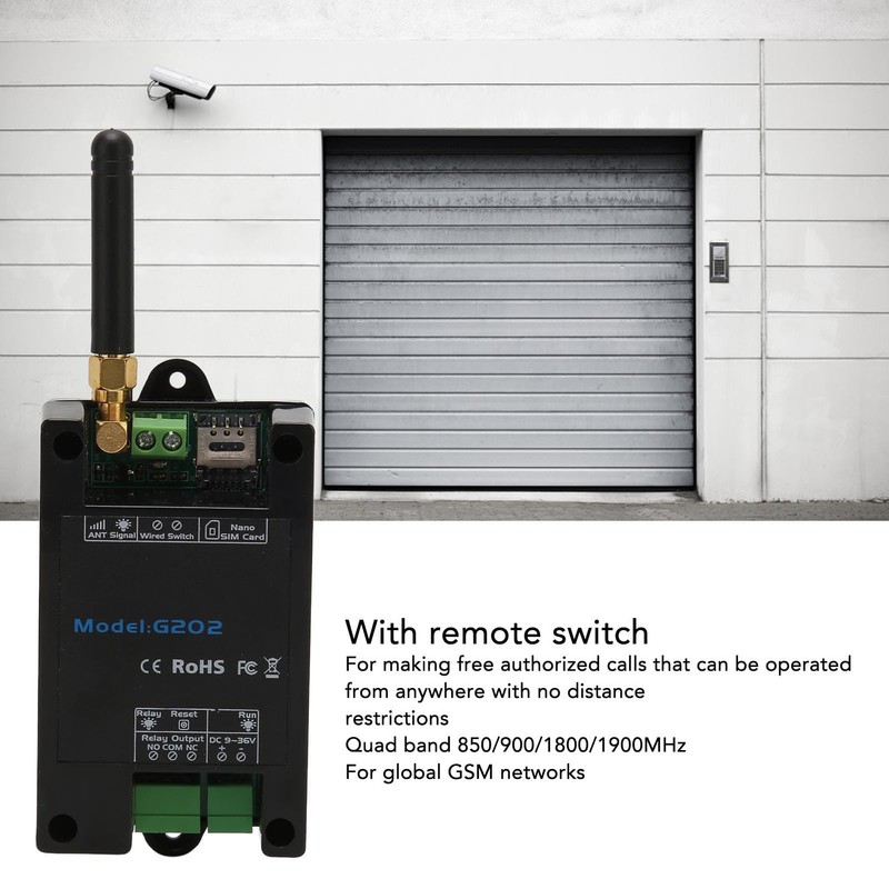 - [WIDELY USED]: GSM remote switch, has small size, easy to carry, especially suitable for garage access control, electronic fan, microwave oven, air conditioning control. And other remote switch devices, used to remotely open/close casement/sliding doors, doors, shutters, garage doors, etc.