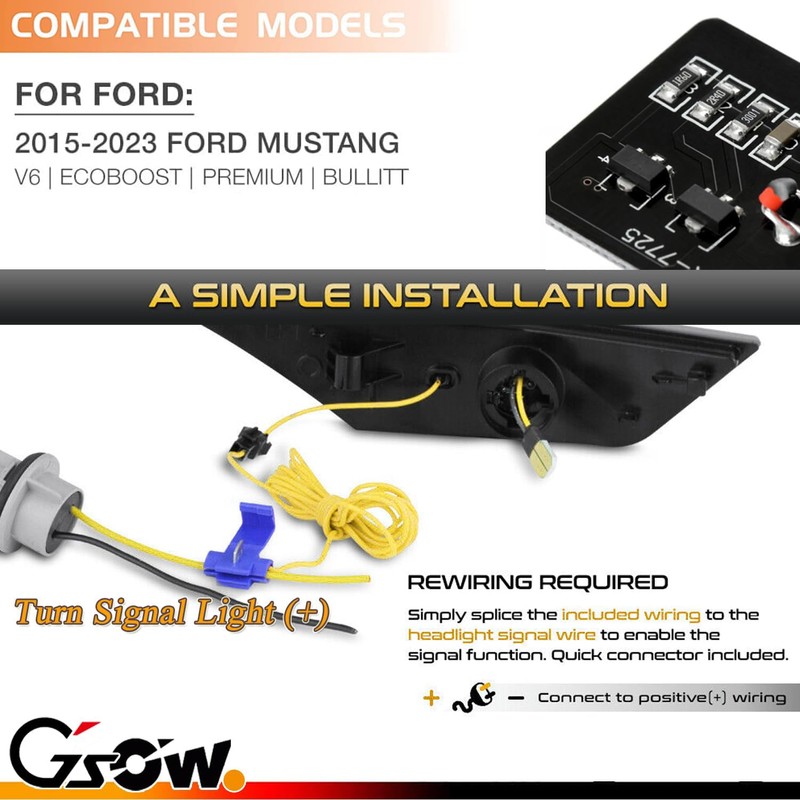 - 💡【Premium Lighting Design】Features sequential amber lighting for fender turn signals and static white for DRL, delivering 5X the brightness of OEM bulbs. Enhances visibility in adverse weather and provides a distinctive, modern look for your Mustang.