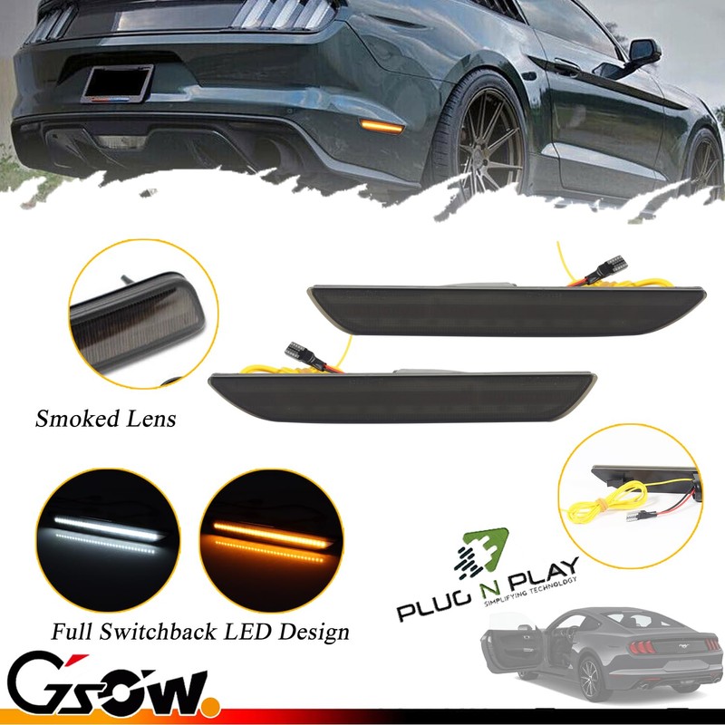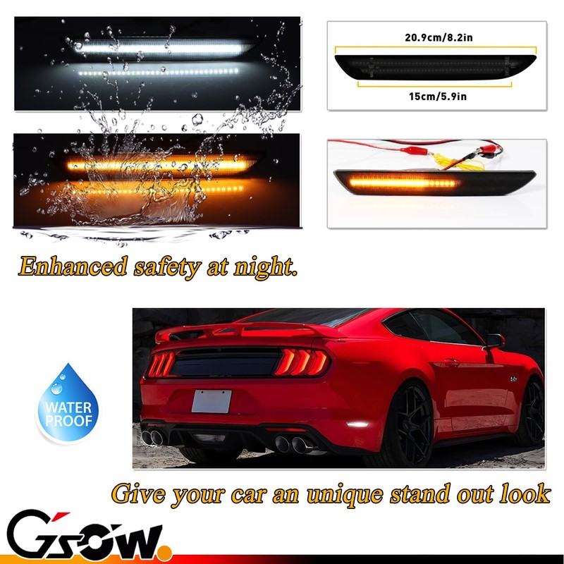 GSOWO [Upgraded] [Sequential Dynamic Switchback] Rear LED Side Marker Lights for Ford Mustang 2015-2023, Smoked Lens rear Amber Turn Signal Lamps, White Fender Marker Reflectors Lamps, 2 Pcs