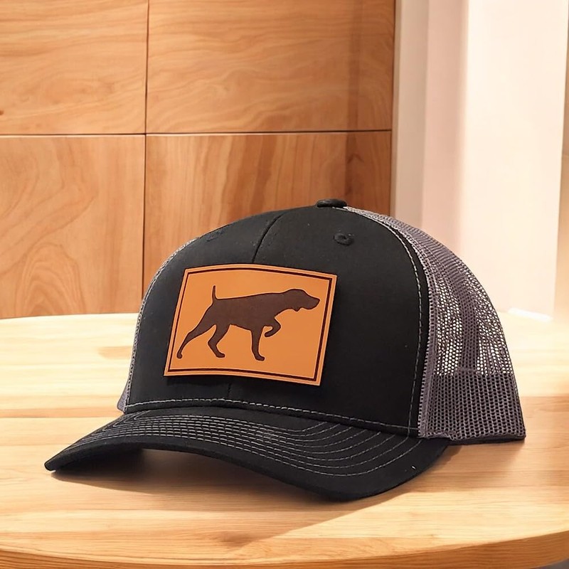 GSP Hat, German Shorthaired Pointer Gifts, Bird Dog Hunting Hat, GSP Gift, Pointer Hat, Trucker Hat, Leather Patch Hat Multi