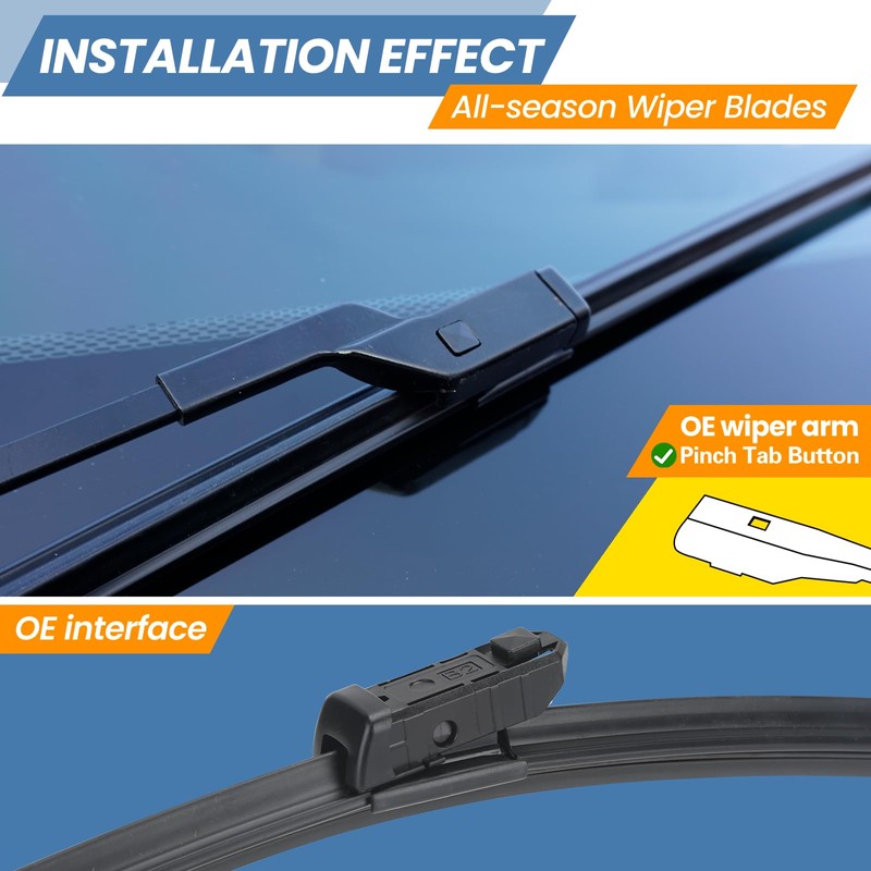 - 【All-season use】These wiper blades are suitable for all seasons. They can easily handle dirt and dust in high temperatures in summer, and quickly clear snow and ice in winter, ensuring clear visibility.