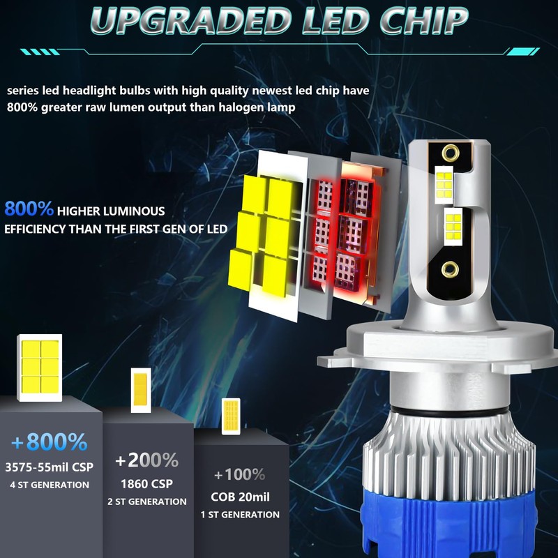 High-quality CSP chips are used, and the LED bulb combination can provide a brightness as high as 200%, with a white light vision of 6000K. It can effectively replace yellow and dim halogen bulbs.
