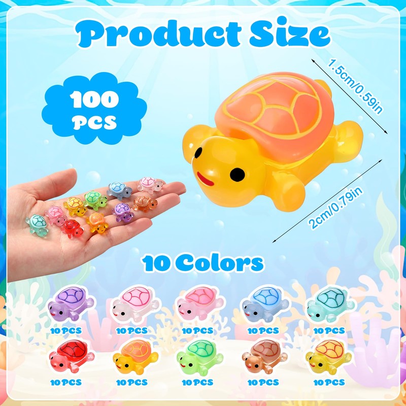 - 【Package Includes】: You will receive a set of 100 mini resin turtles in 10 vibrant colors, including blue, coffee, green, light blue, orange, pink, purple, red, rose red, and yellow, with 10 pieces of each color. This diverse selection offers endless creative possibilities