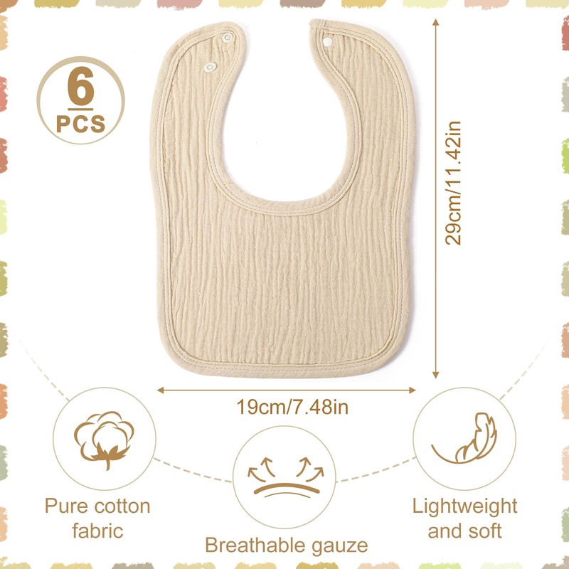 GSrenyu 6 Pcs Baby Muslin Bibs For Newborn 100% Cotton Dribble Bibs With Adjustable Snaps For 0-24 Months Teething And Drooling