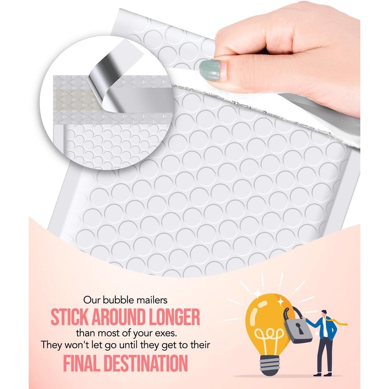 - White 6X7.6 PADDED BUBBLE MAILERS - Our custom pink color padded poly mailers are a reliable packaging solution for your retail or online business. These poly bubble mailer envelopes measure 6x7.6" inches, pack of 450 bubble mailers. Add some color and a personalized touch to each package you send to your customers. Make your business stand out from the rest.