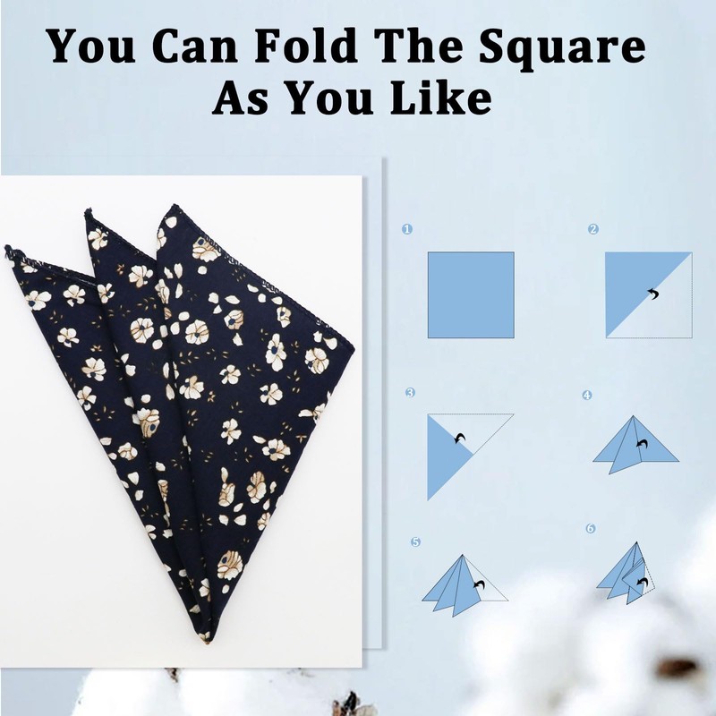 - Size Easy to Fold: Measuring 9x9 inches (23x23 cm), our floral handkerchief provides fabric for versatile folding styles; Quick to style and easy to maintain, mens pocket square is designed for both beginners and seasoned dressers