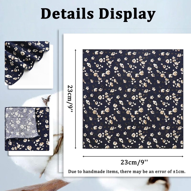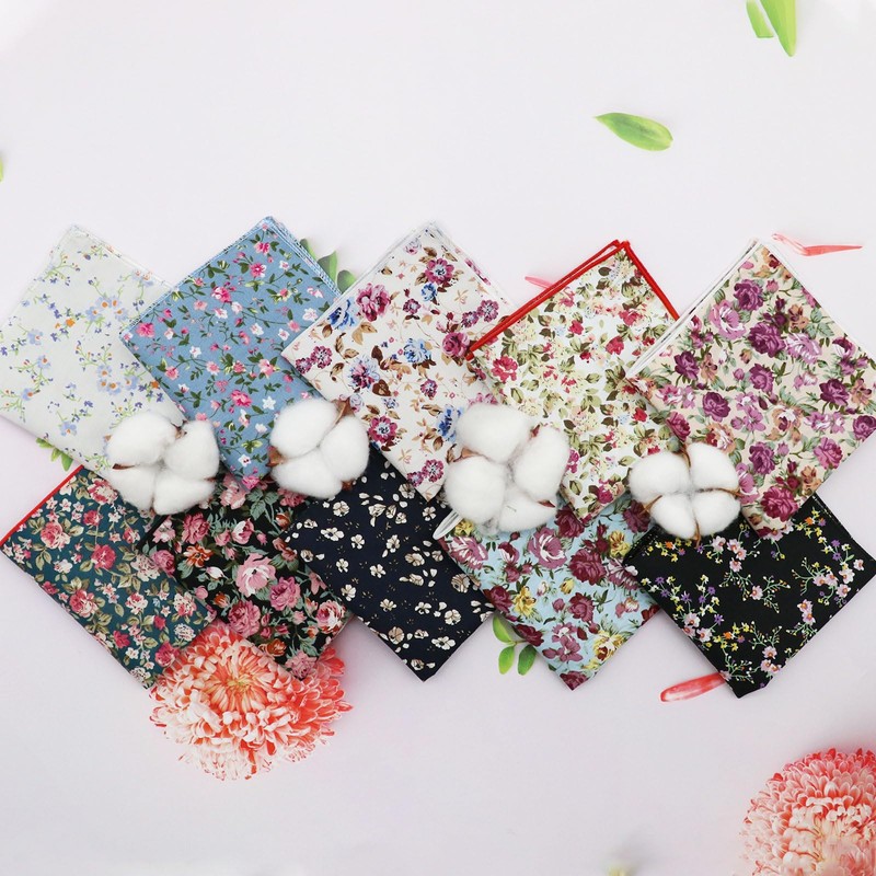 - Cotton Floral Handkerchiefs: Crafted from breathable cotton, these men’s pocket squares feature neatly stitched edges for a polished look and wide range of uses; The pocket square will effortlessly elevate your style to the next level