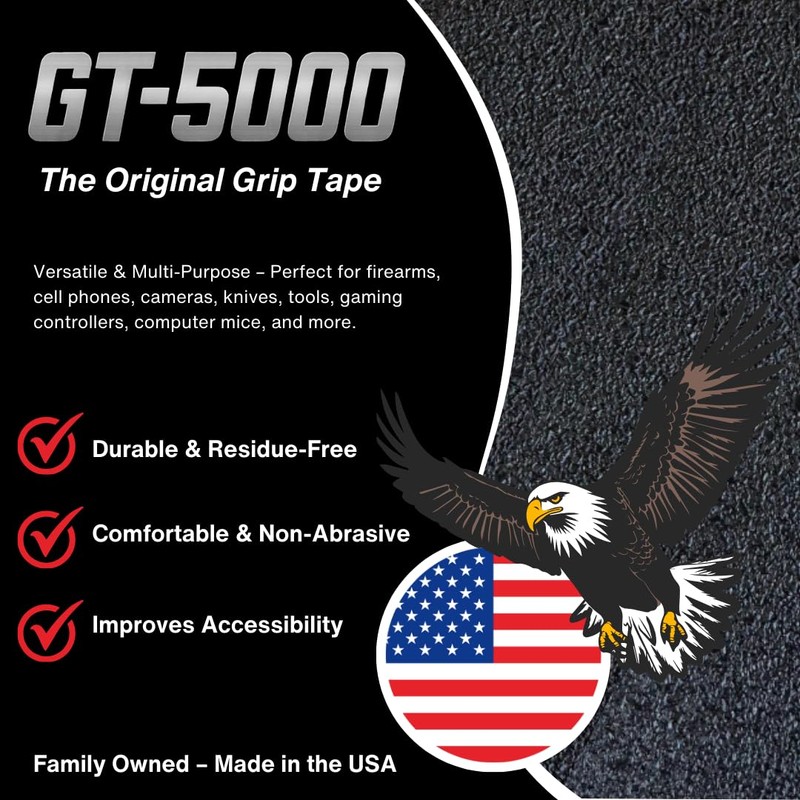 GT-5000 (6 Strips) Grip Tape for guns, cell phones, cameras, knives, tools - makes anything "Grippy"