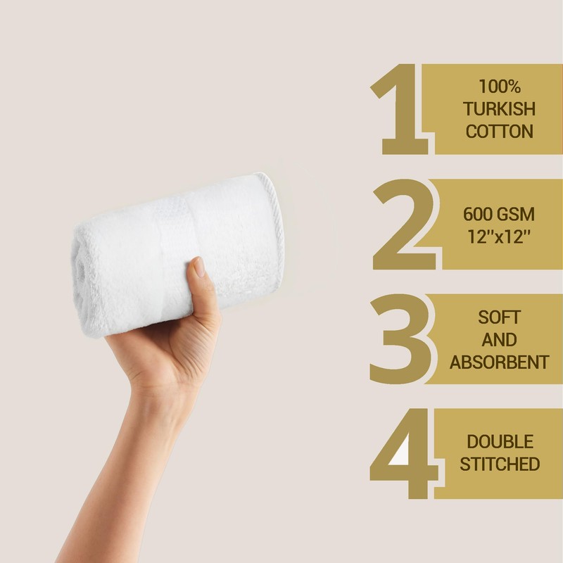 GT Globaltex Fine Linens Luxurious Sunset White Washcloths - Lux, Soft & Absorbent 100% Turkish Cotton Towel Set for Home, Spa - Hotel Quality, 600 GSM OekoTex Quick-Drying Certified Cotton (12"x12")