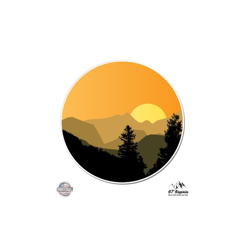 GT Graphics Sunset in The Mountains - 5" Vinyl Sticker - for Car Laptop I-Pad - Waterproof Decal