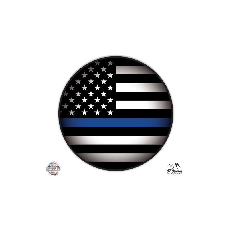 GT Graphics Thin Blue Line American Flag Circle Support Police - Vinyl Sticker Waterproof Decal