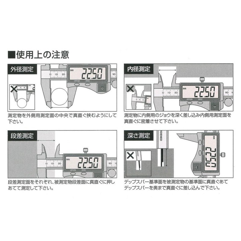 ● Easy-to-read digital display. ● Matched with white text. - Storage case included. ● Read Measurements and not the digital display. ● Large easy to read digital display. * Stainless steel body to hardening process that does not allow movement is smooth. ● Material: Body: Stainless steel (SUS420J2) Part: ABS resin ● Product Size (Length x Height x Width (mm): 170 x 15 x 60 Product Weight (g): 98 use: Measure outside diameter, inside measuring, step measuring, Depth Measurements ● Total length: approx. 170 mm Weight: Approx. 98g * Measuring Range: 0.01 ~ 100 mm ● Use battery: Silver oxide battery SR44 * 1 ● Please reset after 30 seconds you can remove the battery to freshen it up once: in the normal display. - Storage case included * Please note 1: Precise measurement of, for measuring surface tip and deppusuba- are sharp. You don't pay attention to the injury. Display of the "0.00 mm" 「-」( when negative) is displayed as the difference display but no harm to be used. If you do not use for more than 1 months if you are you can remove the battery to save. Battery for leaks due to potentially cause damages to your device. ● The Fear of the false positives, so please note 2: when you use the magnetic field is generated in the model.