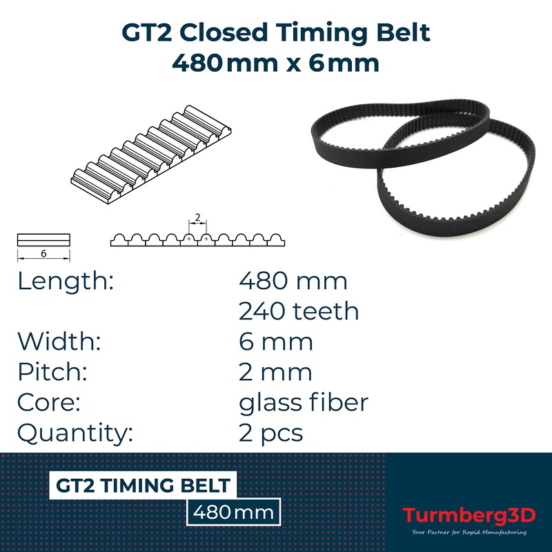 GT2 Closed Timing Belt 6 mm Wide, 2 pieces each (480mm)