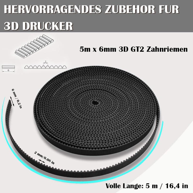 GT2 Timing Belt, 5 m x 6 mm, 3D Printer Timing Belt, Wide Rubber Timing Belt, Suitable for 3D Printers and Most Belt-Driven Printers