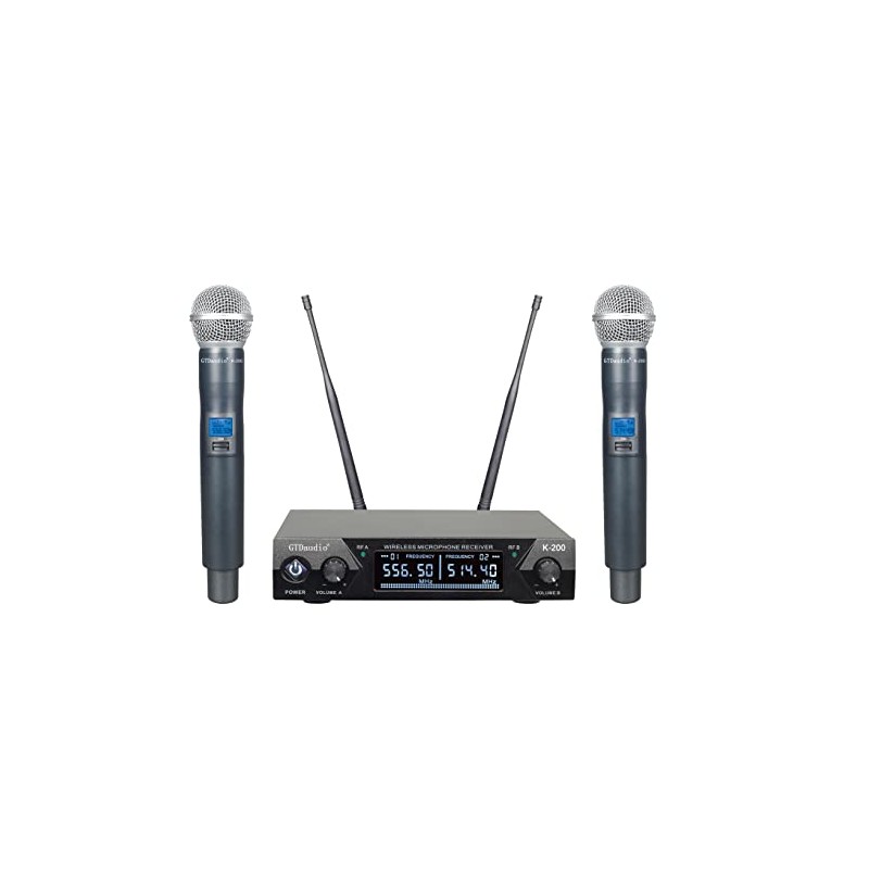 GTD Audio UHF Wireless Microphone System Karaoke mic with 2 Microphones (Metal Mics)