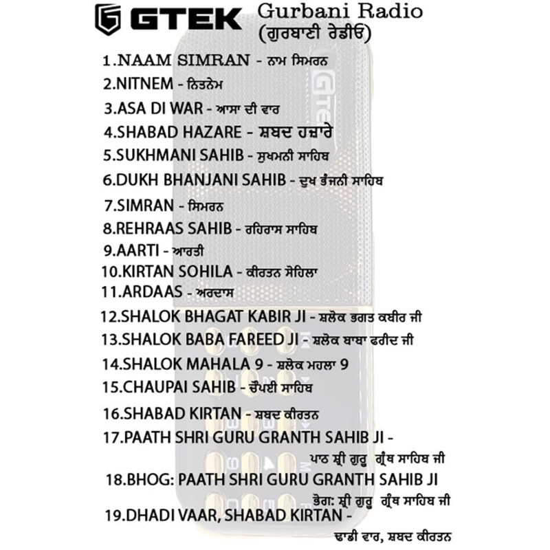 Gtek Canada Gurbani Radio Player (ਗੁਰਬਾਣੀ ਰੇਡੀਓ ਪਲੇਅਰ) Nitnem, Sukhmani Sahib, Simran, Kirtan and More Gurbani Tracks (List Included in The Package)- Black